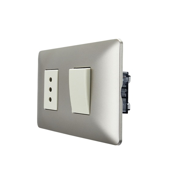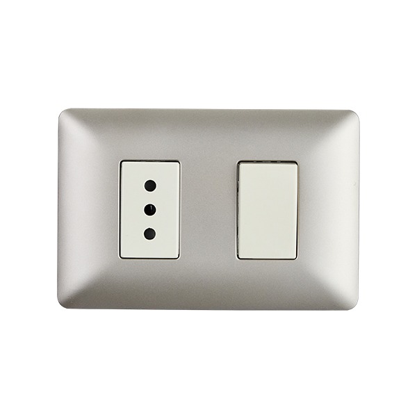 Interruptor Simple (9/12) + Enchufe Simple 10A 250V Champagne